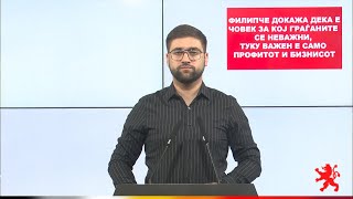 Филипче потврди дека е човек кој не чувствува вина за случајот Онкологија. Филипче докажа дека е човек за кој граѓаните се неважни, туку важен е само профитот и бизнисот.