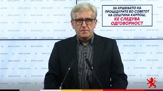 Наместо градоначалникот да ги навредува и да ги упатува советниците на ВМРО-ДПМНЕ и коалицијата, од советот на Карпош на психијатриски прегледи, му препорачуваме да го искористи времето и добро да размисли пред да ја потпише одлуката за донесување Буџет на Општина Карпош за 2024-та година. Треба да знае дека за кршење на сите законски процедури се одговара.
