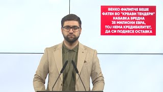 Венко Филипче беше фатен во “Крвави тендери” набавка вредна 35 милиона евра, тој нема кредибилитет, да си поднесе оставка.