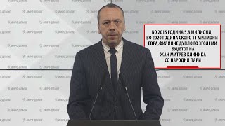 Прво, значително намалување на народните пари кои и се префрлаат на оваа приватна Клиничка болница е минатата 2025 година, кои изнесуваат 479.883.000 денари, односно со преземањето на власта од ВМРО-ДПМНЕ.